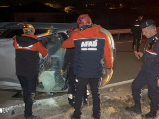 Aksaray’da şoförünün direksiyon hakimiyetini kaybettiği araba yola devrildi, 2 kişi yaralandı.