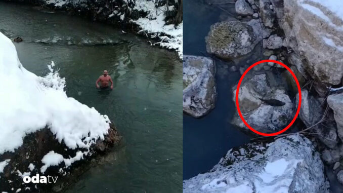 Soğuk havaya karşın çayda yüzen gençlerin bu davranışı dikkat çekerken, su samurlarının varlığı ise bölgenin ekolojik zenginliğini ortaya koydu.